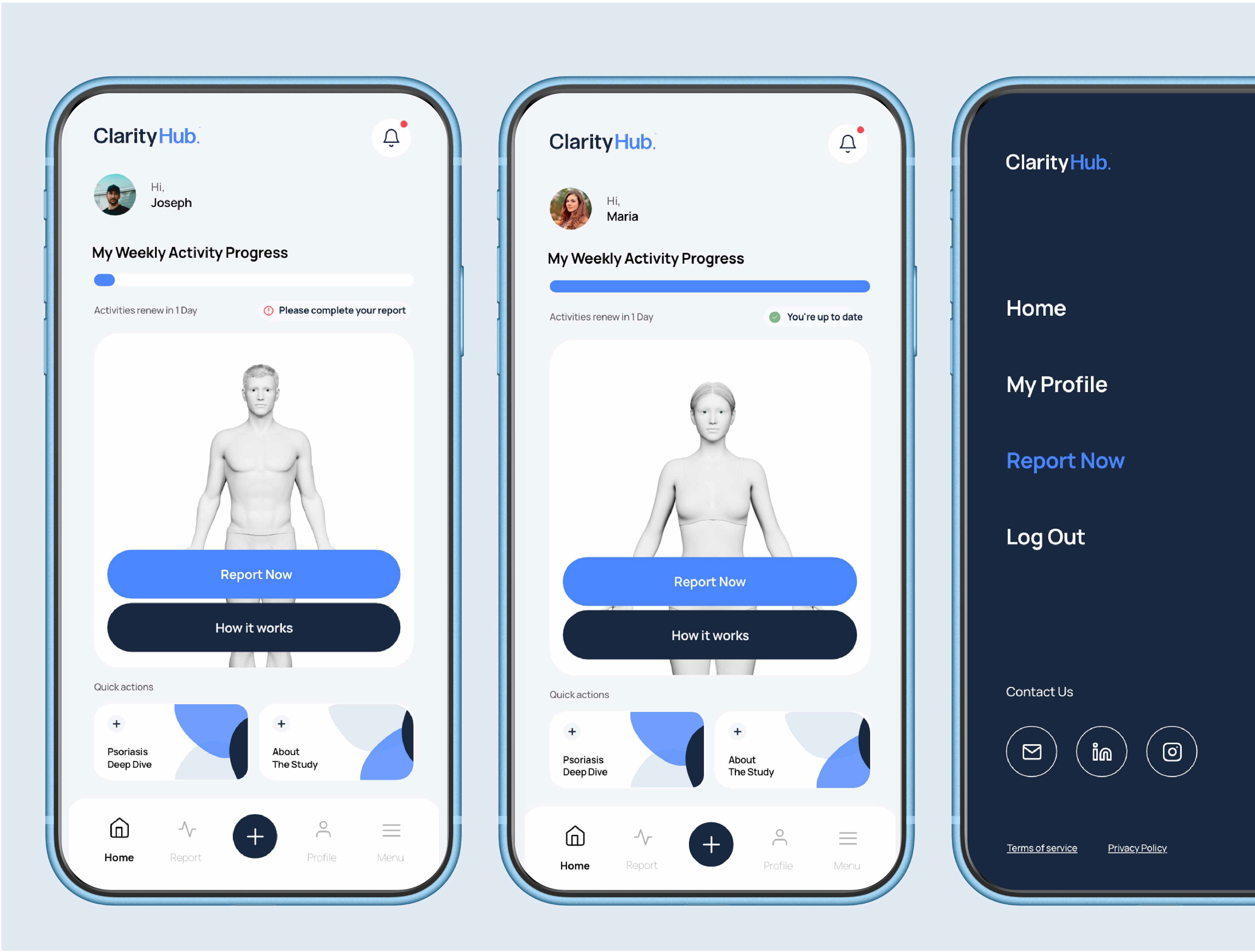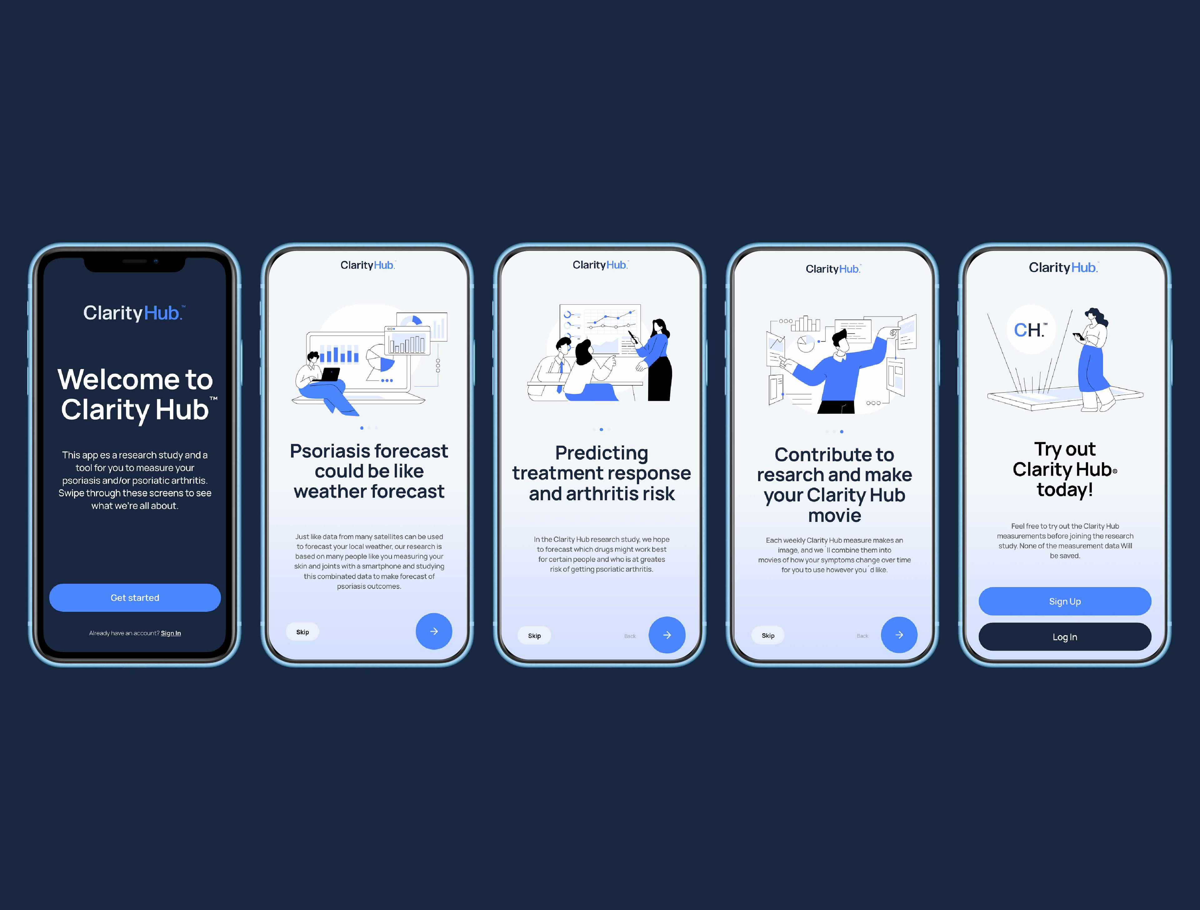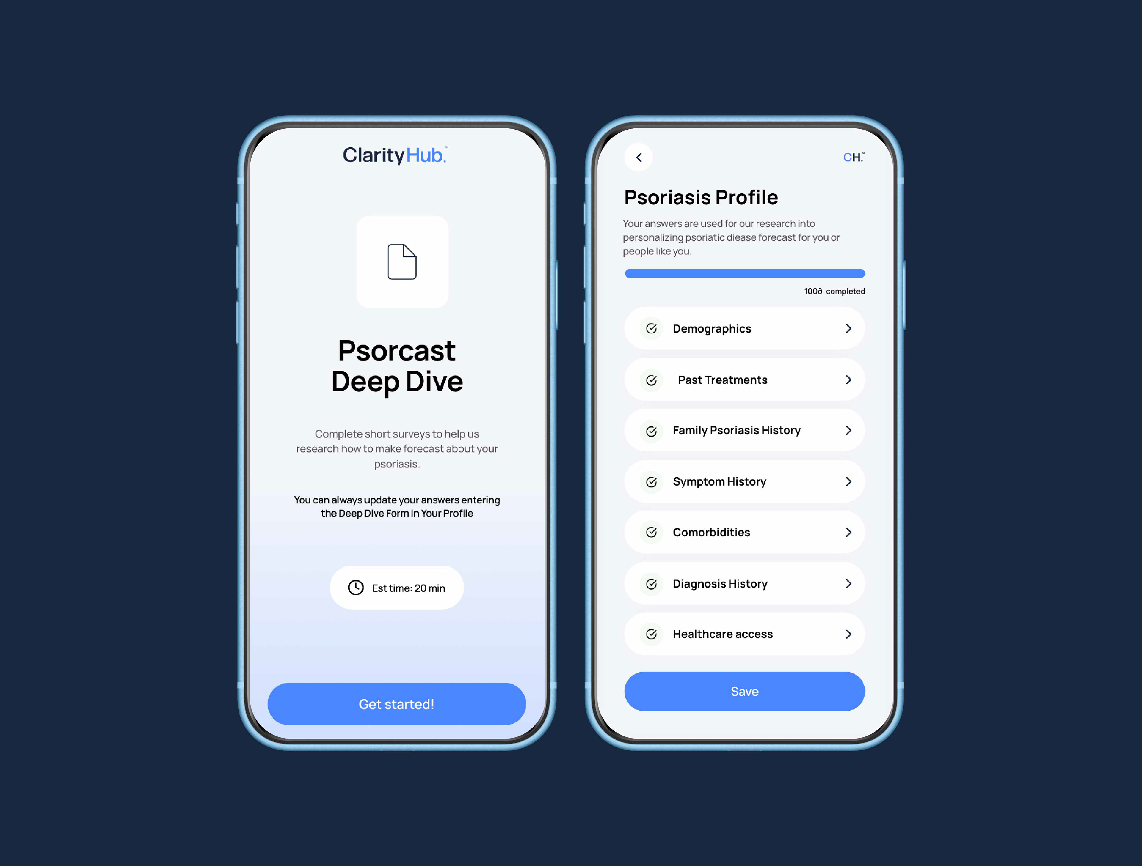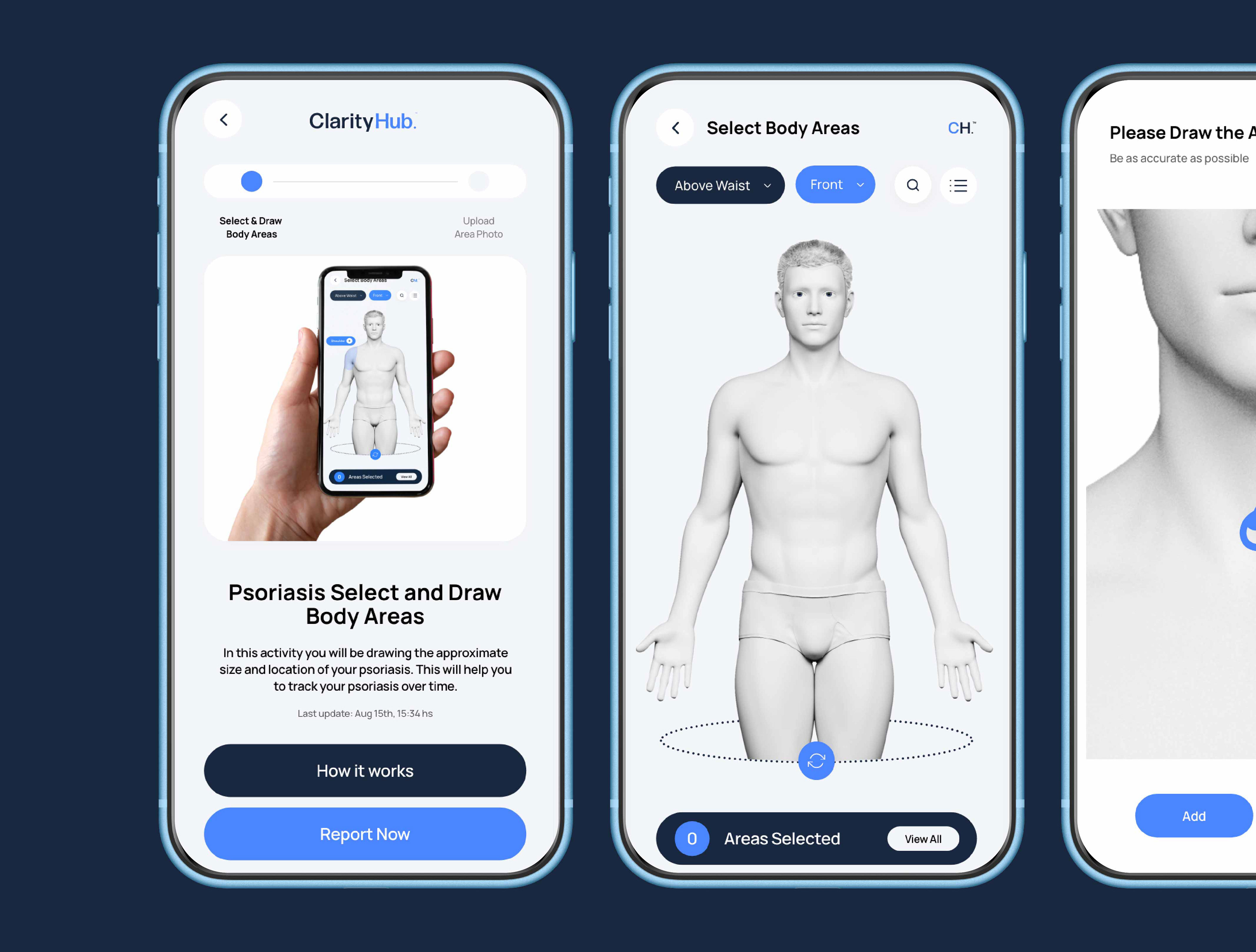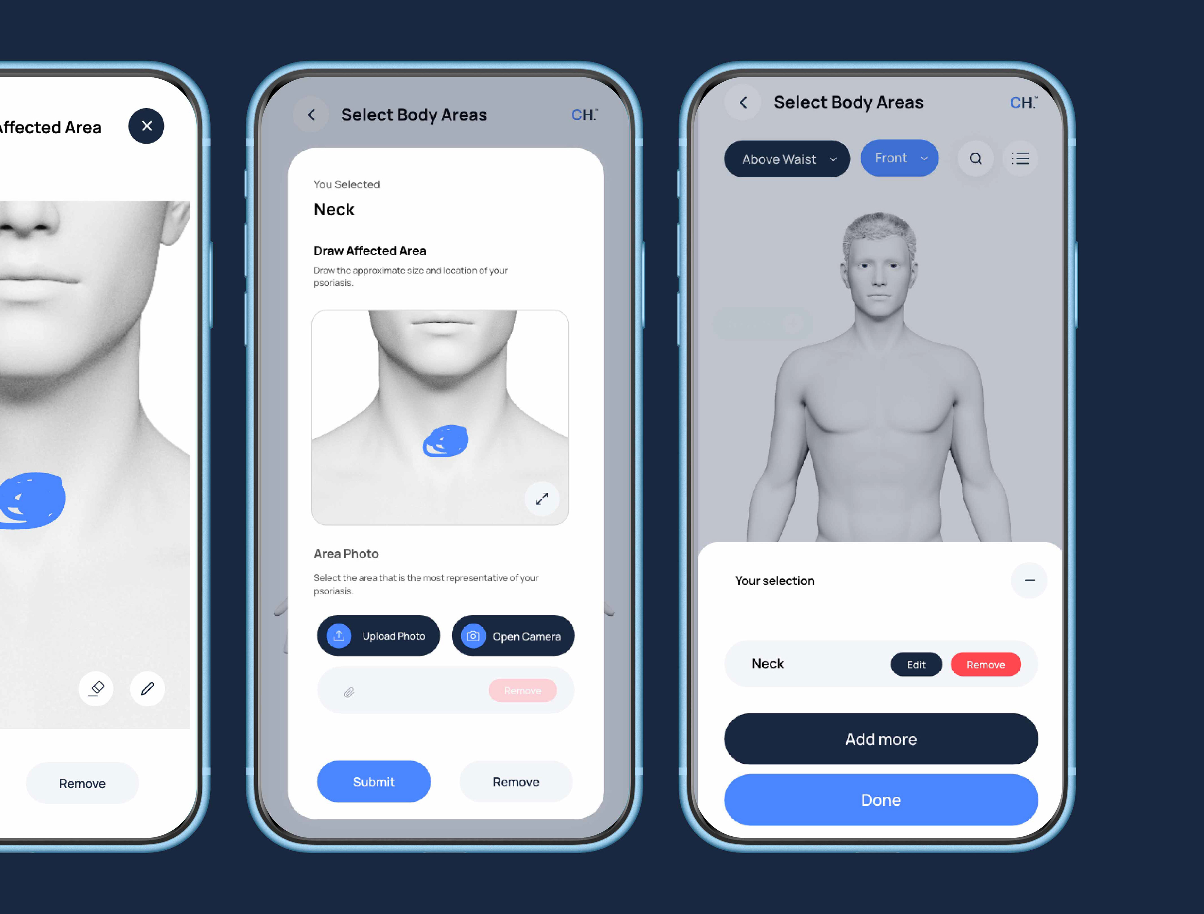 We created an advanced health app designed to help users monitor psoriasis and psoriatic arthritis, predict treatment response, and assess arthritic risk. The experience enables patients to report symptoms, visualize affected areas, and track progress over time.